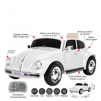 ZIPPY - MINI CARRO ELETRICO 12V FUSCA BRANCO C/ RC