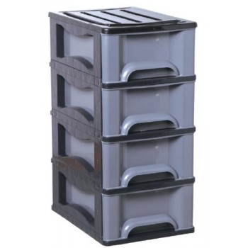 GAVETEIRO PRETO C/04 GAVETAS PRATA - 46X33X70 CMS