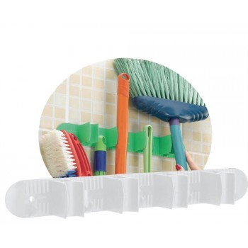 PORTA VASSOURAS C/ 4 ENCAIXES E GANCHOS BRANCO