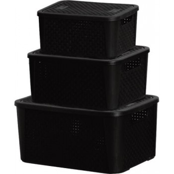 ORGANIZ. RATTAN PRETO C/ 03 PCS - 5,8L / 8,8L / 17L