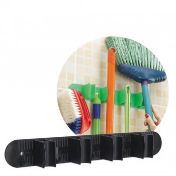 PORTA VASSOURAS C/ 4 ENCAIXES E GANCHOS PRETO